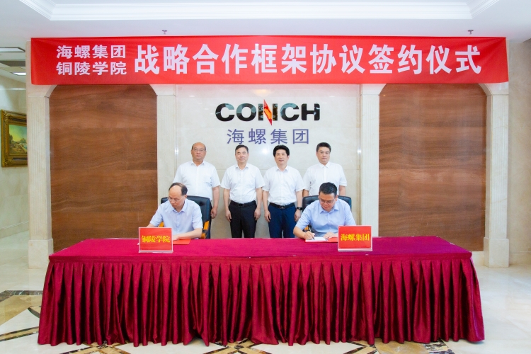 为推进校企合作,深化产教融合,8月19日,学校与安徽海螺集团有限责任公司签订校企战略合作框架协议并座谈交流。海螺集团党委书记、董事长杨军,集团党委委员、副总经理丁锋、李群峰,校党委书记吴照明,党委委员、副校长夏美武,党委委员、人事处处长王亮出席活动。